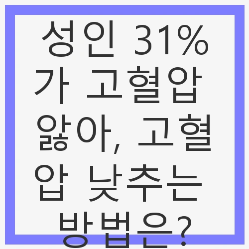 고혈압은 ‘침묵의 살인자’로 불리며, 우리 생활 속에서 주의해야 할 중요한 질환 중 하나입니다. 최근 발표에 따르면, 우리나라 성인의 31%가 고혈압을 앓고 있다고 합니다. 이는 절대 간과할 수 없는 수치인데요. 고혈압은 증상이 뚜렷하지 않기 때문에 자칫 방치할 경우 심장병, 뇌졸중, 신장 손상 등의 심각한 합병증을 초래할 수 있습니다. 따라서 고혈압을 관리하고 낮추는 방법에 대해 알아보는 것이 필수적입니다.