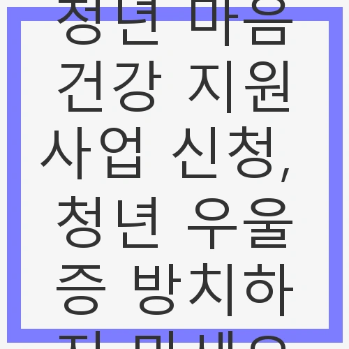 안녕하세요! 요즘 청년 세대의 마음 건강이 점점 더 중요한 이슈로 떠오르고 있습니다. 많은 청년들이 우울증이나 불안감을 겪고 있지만, 이를 해결할 수 있는 방법이 있다는 사실을 아시나요? 바로 청년 마음건강 지원사업입니다. 이 사업은 우울증과 같은 정서적 어려움을 겪고 있는 청년들에게 전문 심리 상담 서비스를 제공하여, 이들이 건강한 마음으로 다시 일어설 수 있도록 돕는 프로그램입니다. 청년 여러분, 마음이 힘들다면 결코 혼자가 아닙니다. 함께 이 길을 걸어가요!