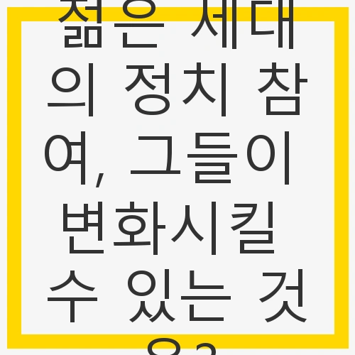 젊은 세대의 정치 참여는 단순히 정치적 참여에 그치지 않고, 그들이 이끌어갈 미래를 위한 중요한 과정입니다. 그들은 다양한 문제를 해결하기 위한 창의적인 방안을 제시하고 있으며, 이는 사회 전반의 발전에 긍정적인 영향을 미칠 것입니다. 과거의 정치적 패턴에 얽매이지 않고, 새로운 시각과 아이디어로 세상을 이끌어나가는 젊은 세대의 모습은 이제 필수적입니다. 그들이 만들어갈 미래는 민주주의의 지속 가능성을 높이고, 사회의 다양성을 더욱 풍부하게 할 것입니다.